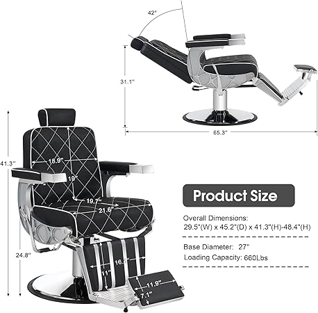 Classic Barber Chair, Professional 660lbs